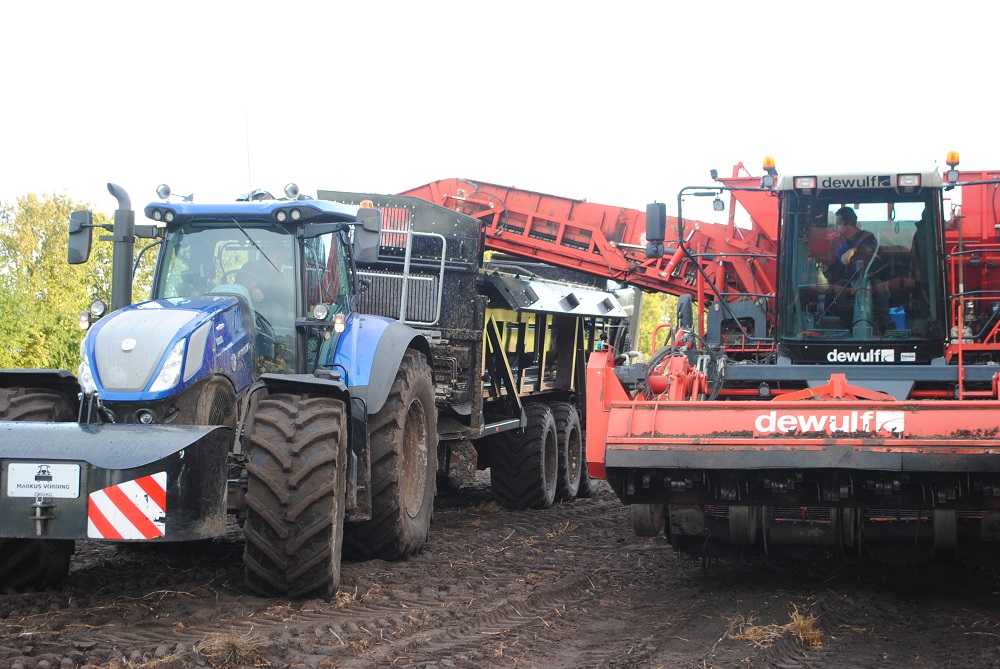 Mesken investeerde ook in vrachtwagens en een vierrijige Dewulf Kwatro-rooimachine, waardoor een capaciteit van vijfhonderd hectare in oogsttijd realistisch wordt. “Het ziet er allemaal groot uit, maar het verleden heeft laten zien, dat wat vandaag niet kan, is over vijf jaar de standaard. Met deze hooglosser zitten we tegen de grens van de capaciteit qua wegtransport aan, groter kan niet.”