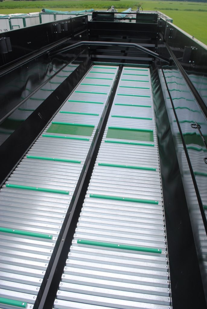 De Dezeure van Mesken is uitgevoerd met een TurboCleaner-set. Dit is een aanbouwbare module voor het reinigen van de producten tijdens het overladen. De aardappelen rollen straks over dertien rollen van polyurethaan. Grond wordt er zo uit gezeefd, komt terecht in een grondbak en kan weer terug het land op. De TurboCleaner is standaard uitgerust met automatische vlakstelling. De reinigingsset is binnen twintig minuten af te koppelen zodat de hooglosser ook als ‘kieper’ of overlaadwagen ingezet kan worden.