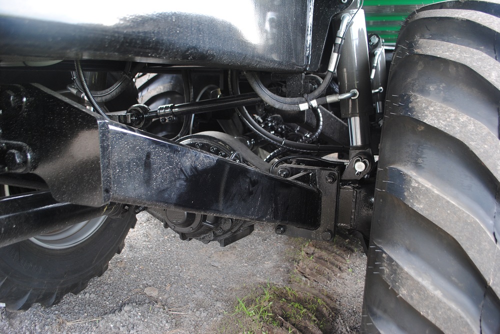 De drie assen van de zwartkleurige hooglosser, die daar zijn bijnaam Black Beast aan ontleent, zijn volledig mechanisch aangedreven en hebben een hydraulisch in- en uitschakelbare slipkoppeling. “Daarmee moet ook in de meest lastige situaties de aardappelen van het land kunnen. Vorig jaar heb ik zonder aandrijving gereden. Ik weet nu zeker dat deze hooglosser nooit opgeeft.”
