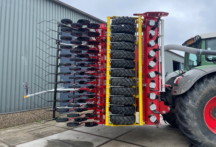 HeGro heeft de Pöttinger Aerosem voorzien van een aangepaste bandenwals, voor betere aandrukking van de grond over het gezaaide zaad.