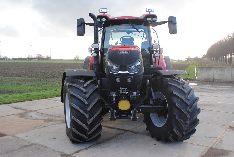 De Case IH Puma 150 is afgelopen voorjaar door Oosthoek in bedrijf gesteld. Een voorraadmodel bij landbouwmechanisatiebedrijf Hamoen uit Ameide, waardoor de nieuwe trekker prijstechnisch gezien interessant was. Een ‘showroom-uitvoering’ met twee zogenoemde dubbelwerkende midmountventielen op de fronthef, extra brede voorbanden en nog meer extra’s. “Had ik niet voor een voorraadmodel gekozen dan had ik er waarschijnlijk ‘normale’ banden onder gezet. Ik ervaar nu toch wel de voordelen van de bredere banden. Je hebt meer trekkracht en draagvermogen. Bovendien kunnen grotere banden meer gewicht aan of lager in druk. Zo rijden we doorgaans met 1,3 bar op de weg, terwijl de druk tijdens het ploegen op 0,8 bar staat”, vertelt Oosthoek.