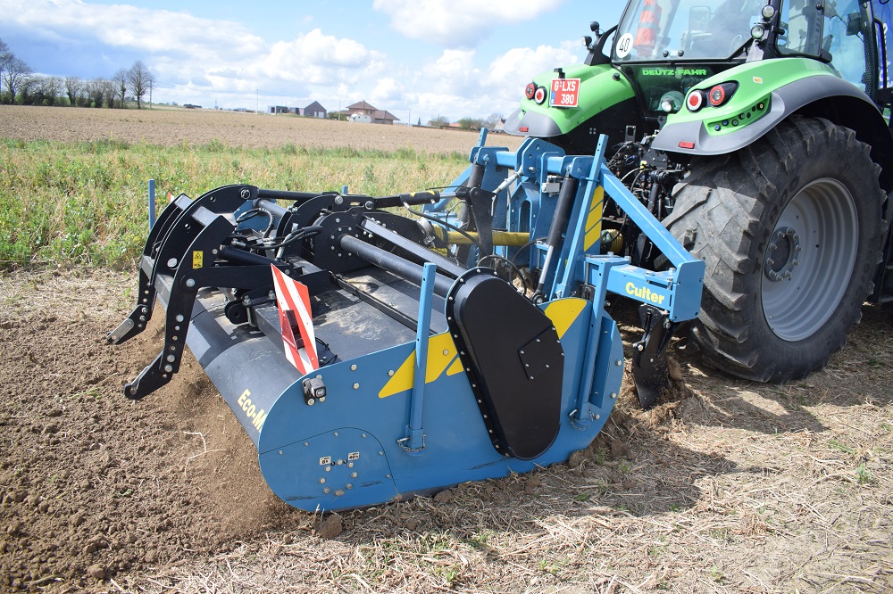 Met de voorzetwoeler, die voorzien is van zes tanden op één rij, wordt er gebroken, niet gemengd. De Eco-mix spitmachine is gemaakt om ondiep te werken en voedingsstoffen boven in de grond houden. Het principe van de spitmachine is mengen. Het zaaibed blijft hierdoor ook iets warmer. Deze combinatie is geschikt voor zwaardere gronden: diep loshalen, ondiep bewerken en een zaaibed maken. De achterste rol egaliseert en werkt een viertal centimeter diep. Machine is makkelijk te combineren met zaaimachine.