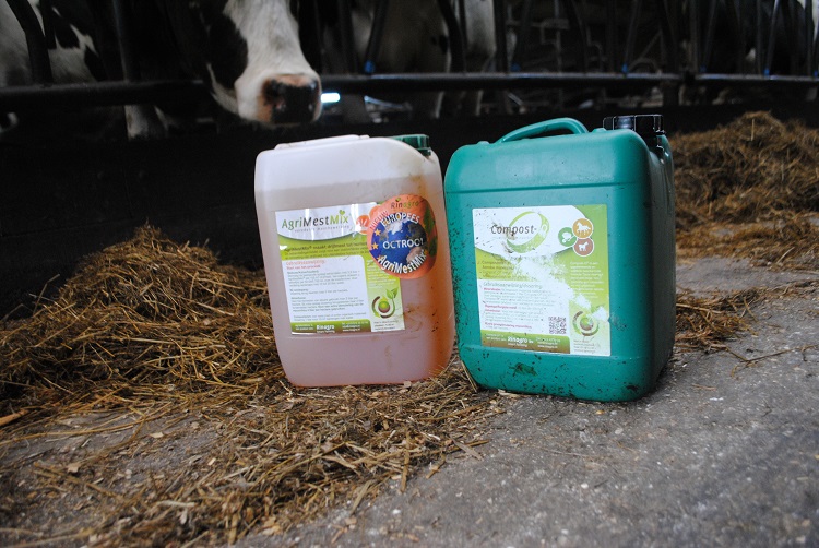 Het bermmaaisel wordt gemengd met Compost-O. Het product van Rinagro beschikt over een gepatenteerde en wettelijk beschermde formule. De vloeistof bevat een hoge concentratie aan mineralen en niet genetisch gemodificeerde aërobe micro-organismen, die vrij in de natuur voorkomen. Door het toevoegen van Compost-O aan het bermmaaisel en de menging met drijfmest wordt er eigenlijk gecomposteerd zonder te beluchten. Na zes maanden ontstaat een bruikbare compost, met gebonden ammoniumstikstof, wat weer veel voordelen heeft. Het spoelt niet uit, de bouwstoffen bereiken de wortel eenvoudig, het versterkt de wortelgroei en versterkt de opname van nutriënten. Het versterkt de celstructuur in blad, waardoor een hoger weerstand tegen ziektes wordt bereikt.