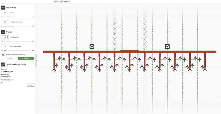 Pöttinger heeft de toepassing ‘tramline assist’ voor een optimaal rijpadensysteem in de akkerbouw al succesvol geïmplementeerd. Voor het oogsten van grasland maakt ‘haytool assist’ het snel en gemakkelijk om de juiste schudder te vinden die bij verschillende maaiers past. Voortbouwend op dit succes lanceert Pöttinger nu ‘row crop assist’ om de opstelling van mechanische gewasverzorgingsmachines te optimaliseren.