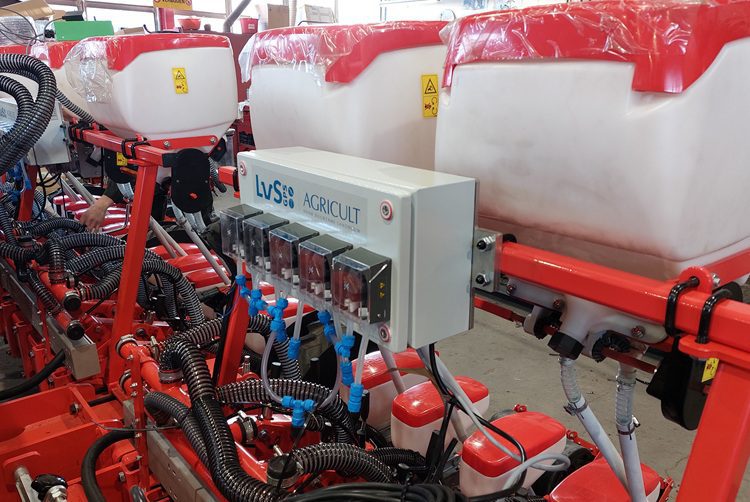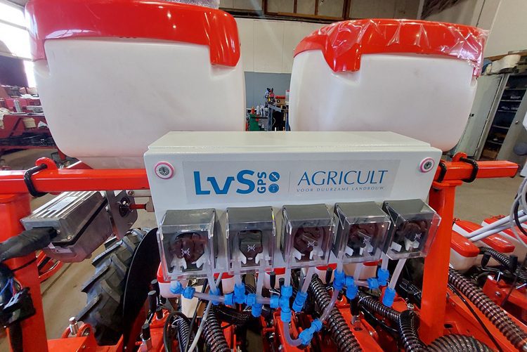 Dit systeem doseert GPS- en rijsnelheidsafhankelijk en maakt het mogelijk om biostimulanten of vloeibare startmeststoffen nauwkeurig in de zaaivoor toe te dienen.